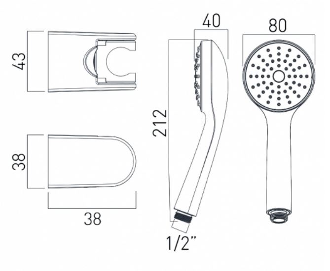 Single function hand shower with wall bracket and 150 cm shower hose