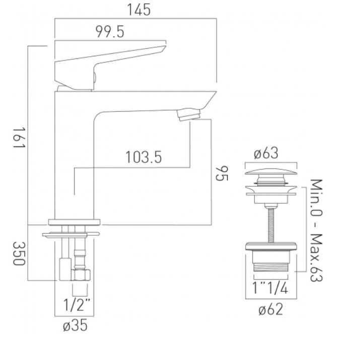 PHO-100M-CC-C-P-Basin-Mixer