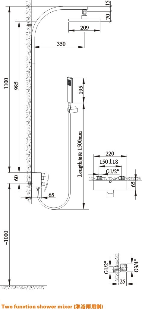 Two function rain shower